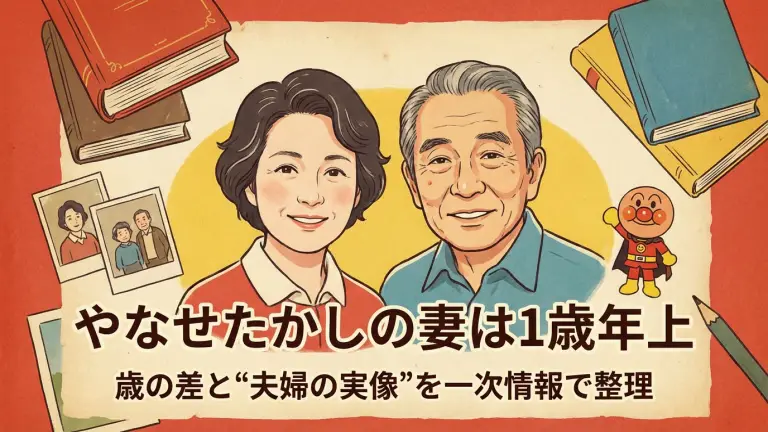 朝ドラや特集で「やなせたかし夫妻」が気になったのに、検索すると“断定口調”の噂や、出典が曖昧な年表が混ざっていてモヤっとする——。 この記事では、歳の差(年齢差)の結論を最短で出しつつ、どこまでが事実で、どこからが推測かを分けて整理します。 結論:歳の差は「1歳」。妻・小松暢さんが年上 結論から言うと、**やなせたかしさん(1919年2月6日生まれ)に対して、妻の小松暢(こまつ のぶ)さん(191 […]